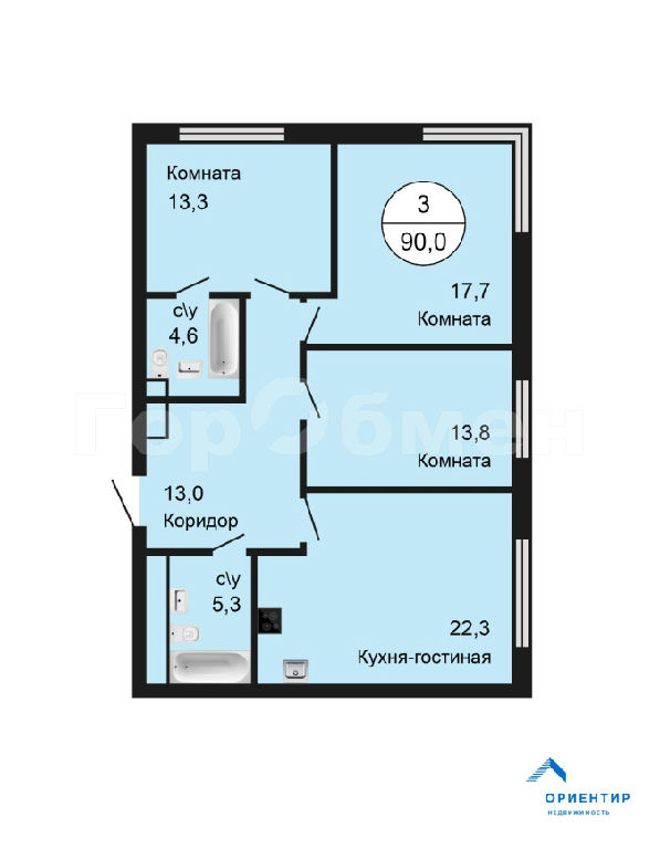 Квартира с удобной и функциональной планировкой. Большая кухня гостиная с шикарными видами на город. Три отдельные спальные комнаты, два санузла. Окна на две стороны света.